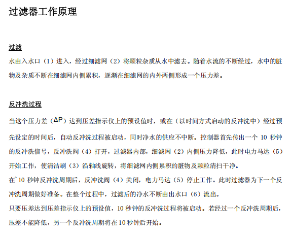 8、该设备采用316L不锈钢编织网进行过滤,对粘性,油性杂质的去除能力较差,对砂砾,藻类等固体颗粒物,固体悬浮物有较好的去除能力。
